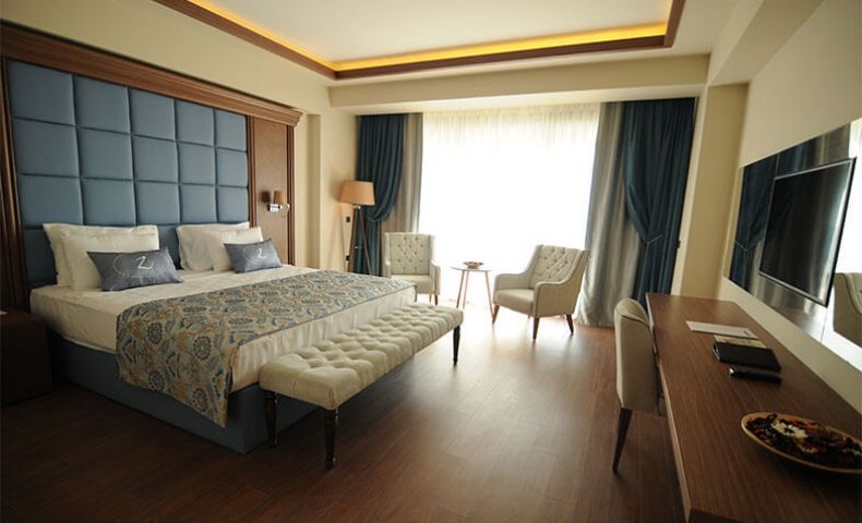 Хотелът разполага с основна сграда със общо 102 стаи, от които стабндартни стаи с изглед море - 32 кв.м.; суити с изглед море (спалня, всекидневна, 2 тоалетни и 1 баня) - 102 кв.м; 65 вили с изглед море или градината - 205 кв. м ( на 2 етажа , на първи етаж има хол с кухня и маса за хранене, а на втори две двойни спални; с три тоалетни и две бани).