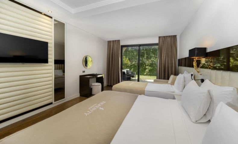 От които 5 Promo room (без балкон – 22 м2), 30 Deluxe sea view (изглед море 26 - 30 м2), 160 Deluxe room,  16 Garden room with Terrace  - с тераси,  20 Junior Suite Room (хол + спалня 32 – 34 м2).