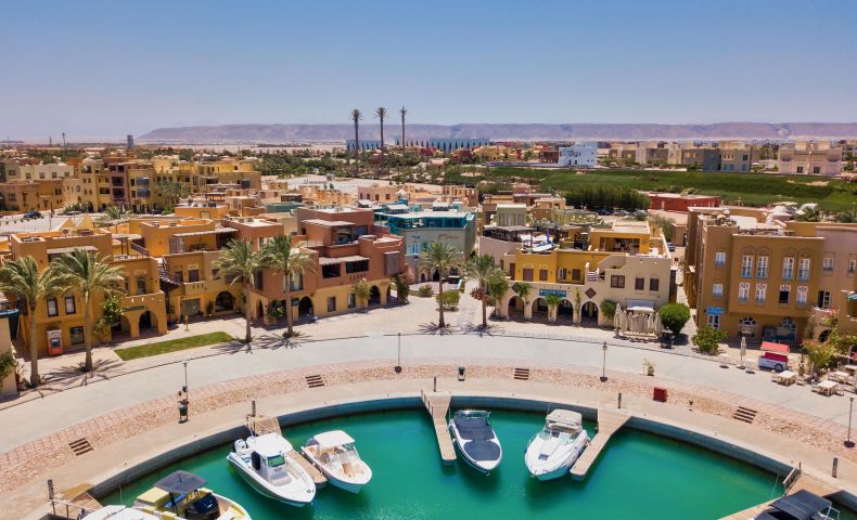 Намира се на 40 км от летище Хургада, на 21 км от центъра на Хургада, в района на пристанище Абу Тиг в Ел Гуна, на брега на морето.