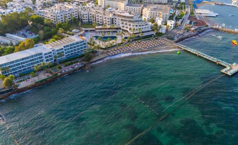 Хотелът е разположен на 50 км от летище Милас, на 20 км от центъра на Бодрум, в района Тургутрейс, на 1 км от центъра на Тургутрейс, на брега на морето. Разполага с площ от 30.000 m², последно реновиран изцяло през 2022/3 година.