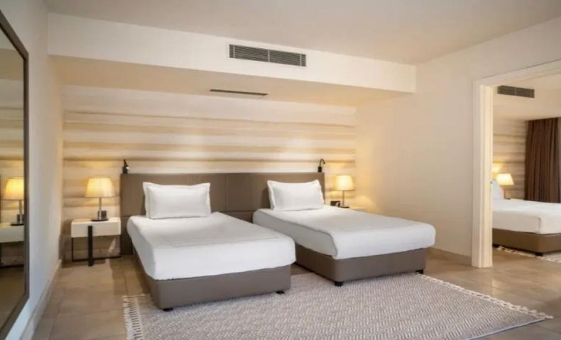 Хотелът разполага с общо 248 стаи с гледка градина или море и се състои от основна сграда и анекс сграда - Family Room Sea View (35-40 m² две помещения със спалня и отделни легла, сврързваща врата между помещенията; една баня с тоалетна; в основната сграда и анекс сграда към хотела), Standard Room (25-30 m² с вътрешен изглед са разположени в основната сграда, а с морски изглед и в анекс сградата на хотела), Handicapped room (30 m² разположени в основната сграда на приземен етаж), Select Superior Room (28 m² разположени в анекс сградата), Suite (45 m²).