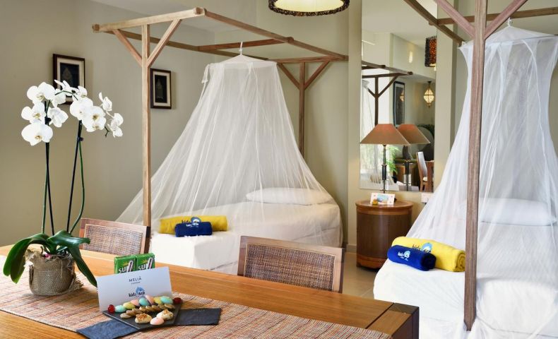 Хотелът разполага с общо 124 стаи, от които 60 Melia Garden (разположени на приземния етаж с директен достъп до градината, 50 кв.м), 40 Melia Terrace (разположени на първия етаж с изглед към градината или частичен изглед към океана, 50 кв.м), 5 Family Rooms (разположени на първия етаж с изглед към градината или частичен изглед към океана, състои се от две спални, всекидневна, две тераси, 117 кв.м) и 14 Ocean View Bungalows (уютно дървено бунгало с голяма тераса, с директен изглед към океана, 65 кв.м). Всяка една от стилно и съвременно обзаведените стаи е оборудвана с климатик, телевизор, телефон, баня с душ/вана, сешоар, минибар, сет за чай/кафе, сейф, балкон или тераса.