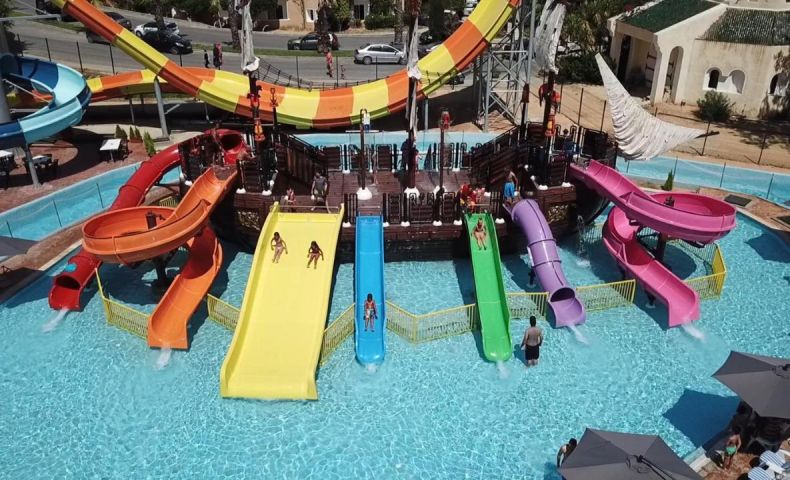 Аква парк от 2018 год.: 6 водни пързалки за възрастни, 11 водни пързалки за деца, басейн с вълни и изкуствена река (безплатен вход за гостите на хотела, храна - срещу допълнително заплащане).