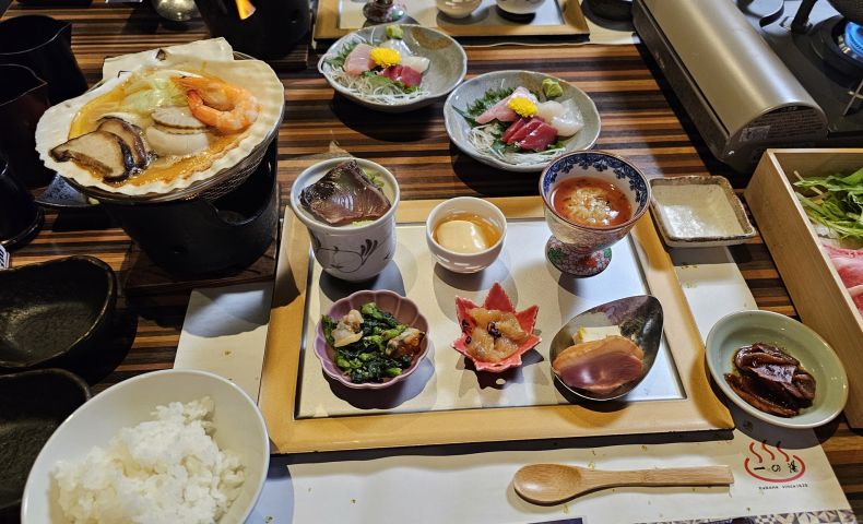 6 вечери (без включени напитки), 4 от които в местни ресторанти, 1 в ресторант с Maiko/Geiko представление и 1 в хотела в Хаконе;