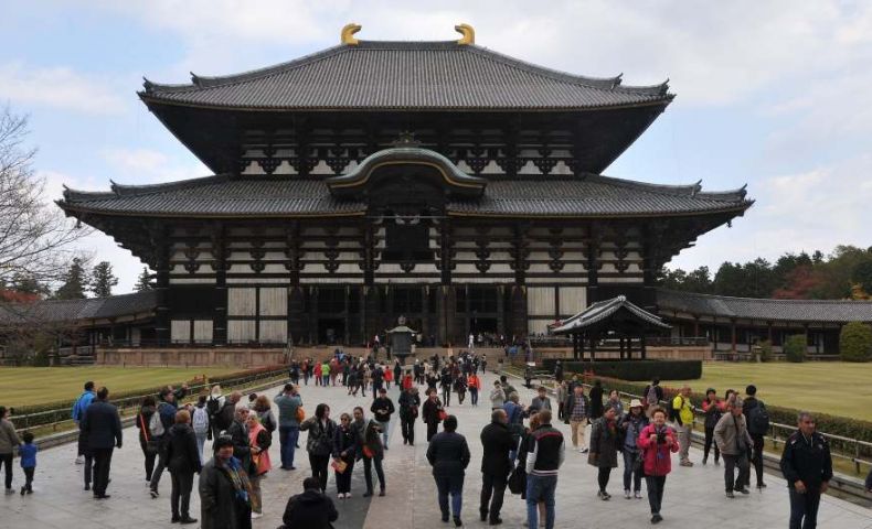 СЕДМИ ДЕН: Закуска. Отпътуване за старата столица Нара (Осака – Нара 30 км). Посещение на будисткия храм Тодайджи – един от седемте най-големи в Япония. Основната сграда е призната за най-голямата дървена конструкция в света и помещава колосалната бронзова статуя на Буда с височина 15 м. Разглеждане на шинтоитското светилище Касуга Таиша, използвано и като семейна гробница на фамилията Фудживара, дала на Япония много регенти и императори през периода Нара. Паметник на ЮНЕСКО, гробницата впечатлява с украсата от многобройни бронзови и каменни фенери. В храмовия комплекс са разпръснати множество по-малки спомагателни светилища, разположени по протежение на пътя покрай главния храм и посветени на дванайсетте бога на късмета. Комплексът e известен и със своя парк с елени, където животните се разхождат на свобода и могат да бъдат наблюдавани. Обяд. Посещение на старата част на Нара. Завръщане в Осака. Разходка из пазара Куромон – един от централните и добре познати на местните граждани пазари в Осака, където могат да бъдат намерени различни типични за Япония хранителни продукти и стоки. Разходка по популярната търговска улица „Дотонбори”, разположена на брега на едноименния канал. Улицата впечатлява с многобройните си неонови реклами на големи магазини и ресторанти. Разходката продължава по успоредната улица „Шинсайбаши”, където са съсредоточени бутиците и магазините на най-известните марки. Завръщане в хотела. Нощувка в Осака.