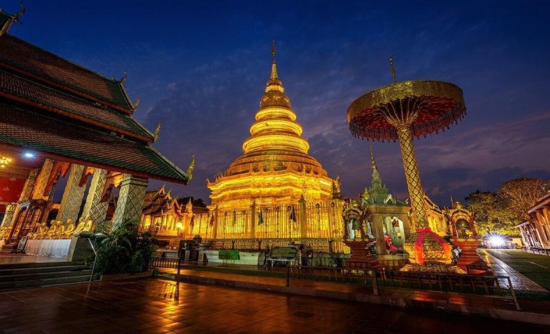 С история, датираща от IX век, храмът впечатлява с изящество и хармония. Ще се насладим на величествени статуи на Буда, изкусно орнаментирани фасади и бляскави ступи, сред които се откроява 46-метровото златно чеди, изградено в стил Лана - символ на благоденствие и духовна сила. Ще видим също и 21-метровото чеди в стил Харипунчай, което свидетелства за древната история на града като столица на едноименната монска държава.