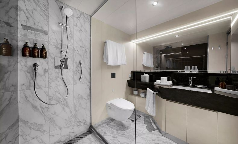 - Характеристики на апартаментите: Всички апартаменти са с изглед море/океан. Обща площ на апартамента: 35 кв.м Апартамент: 28 кв.м Тераса: 7 кв.м Максимален капацитет: 2 възрастни и 1 дете до 18г Големи прозорци от пода до тавана с изглед към морето Дневна зона с маса за кафе и хранене Бутилка Veuve Clicquot Yellow Label за добре дошли в апартамента Мини-бар, допълващ се според предпочитанията на гостите Машина за еспресо, чайник и кана за чай с безплатна селекция от кафе и чай Безплатна персонална бутилка вода за многократно пълнене за всеки гост Чифт бинокъл за ползване от гостите по време на пътуването им Възможност за включване на повечето таблети и лаптопи Просторна тераса с кът за хранене към океана Удобно легло за почивка на терасата Голямо легло - размер: 180 x 200 см. Някои апартаменти са с две единични легла - размер: 2 x 90 x 200 см Пухени завивки и възглавници Фино спално бельо от Frette Богат избор на възглавници Просторен гардероб Просторна баня с душ кабина и подово отопление Плюшени халати от Frette Тоалетни принадлежности и принадлежности за баня Dyson Supersonic TM сешоар и осветено огледало за грим/бръснене