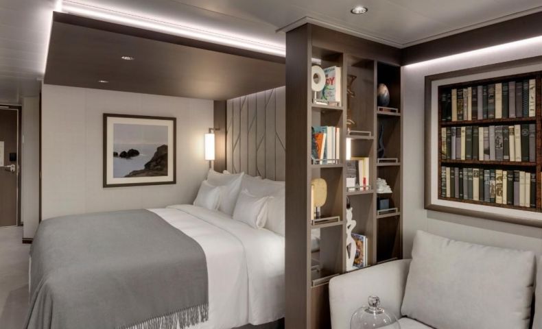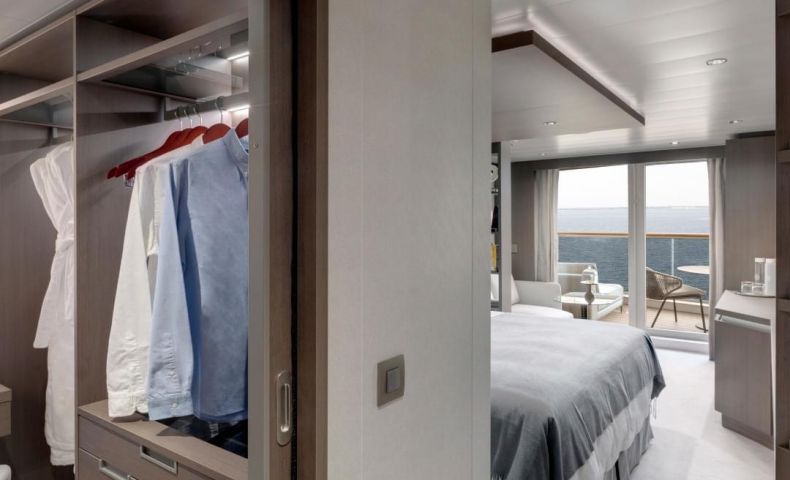 - Характеристики на апартаментите: Всички апартаменти са с изглед море/океан. Обща площ на апартамента: 35 кв.м Апартамент: 28 кв.м Тераса: 7 кв.м Максимален капацитет: 2 възрастни и 1 дете до 18г Големи прозорци от пода до тавана с изглед към морето Дневна зона с маса за кафе и хранене Бутилка Veuve Clicquot Yellow Label за добре дошли в апартамента Мини-бар, допълващ се според предпочитанията на гостите Машина за еспресо, чайник и кана за чай с безплатна селекция от кафе и чай Безплатна персонална бутилка вода за многократно пълнене за всеки гост Чифт бинокъл за ползване от гостите по време на пътуването им Възможност за включване на повечето таблети и лаптопи Просторна тераса с кът за хранене към океана Удобно легло за почивка на терасата Голямо легло - размер: 180 x 200 см. Някои апартаменти са с две единични легла - размер: 2 x 90 x 200 см Пухени завивки и възглавници Фино спално бельо от Frette Богат избор на възглавници Просторен гардероб Просторна баня с душ кабина и подово отопление Плюшени халати от Frette Тоалетни принадлежности и принадлежности за баня Dyson Supersonic TM сешоар и осветено огледало за грим/бръснене Описание на кораба: Дължина: 248 м Тонаж: 63 900 GT Три открити басейна и един закрит басейн с подвижен стъклен покрив Над 700 кв. м уелнес съоръжения на закрито и на открито Над 270 кв. м фитнес съоръжения с най-новото оборудване Казино, художествена галерия и бутик
