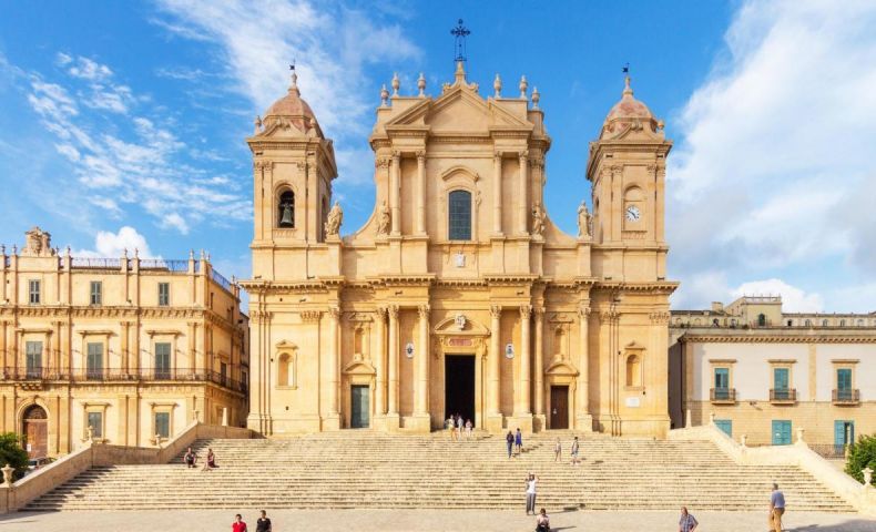 Туристическа програма с местен екскурзовод по централната улица „Виторио Емануеле“, където ще видите: внушителната Катедрала на Ното, църквите и манастирите от XVIII век, прочутия дворец „Палацо Николачи“ с най-красивите барокови балкони в света - пищно украсени с маски, грифони и кентаври.