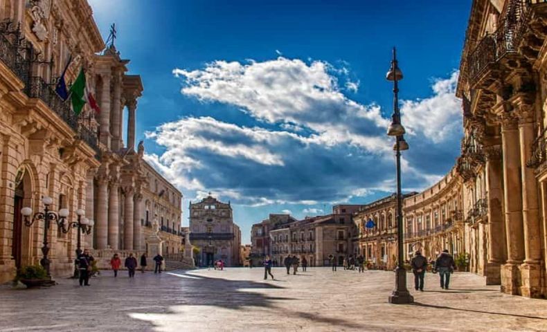 Площад Ил Дуомо, където се намира великолепната катедрала и църквата „Света Лучия“, в която се съхранява оригиналът на прочутото платно на Караваджо - „Погребението на Света Лучия“