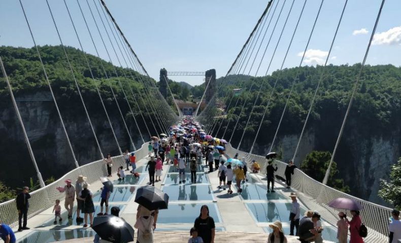 Закуска. Посещаваме Гранд Каньон Джандзядзие. С типичния за Джандзядзие релеф, спиращите дъха скали, буйните гори, древните пещери, цветните езера и реката, течаща през каньона, Гранд Каньон Джандзядзие е много предпочитан от изследователи и любители на природата от страната и чужбина. Акцентът на каньона е Стъкленият мост, архитектурно чудо, изработено от прозрачно стъкло с платформа за бънджи скок в центъра на моста, откъдето може да се насладите на панорамна гледка към величествения Гранд Каньон Джандзядзие. Качване на лифт до планината Тиенмън. Тя се намира в централен Китай и името ѝ означава “небесна порта” или „врата към рая”. Възможност за разходка по т.нар. „стъклена пътека“, намираща се на 1400 м над морското равнище. С дължината от около 60 метра и широчина по - малко от 1 м., пътеката, разположена на склона на планината, има стъклен под и спира дъха на всеки дръзнал да се разходи по нея. Придвижване пеша (около 30 мин.) до пещерата Тиенмън, дълбока 30 метра и известна с 999-те стъпала, водещи към нея, които се наричат „стълбата към Рая“. Вечеря. Трансфер до летището за полет до Шанхай. Пристигане. Настаняване в хотела и нощувка в Шанхай.