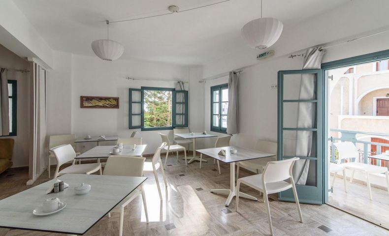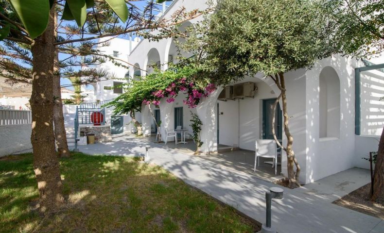 Хотелът се състои от 2 сгради и е построен в модерна цикладска архитектура с много влияния от природата, наскоро реновиран. Намира се в много тих район, на 150 метра от плажната алея, където можете да намерите ресторанти, магазини и барове или просто да се разходите до плажа, за да се отпуснете. Хотелът предлага голям плувен басейн със снек бар, отворен през целия ден.