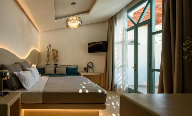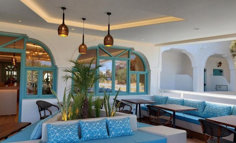 На 50 м от хотела може да намерите плаж, който има гладък черен пясък и е награден със син флаг. На същото разстояние можете да се насладите на живописни таверни или на космополитни нощни клубове с гледка към безкрайното море.