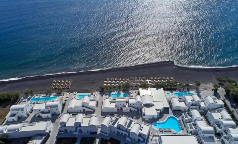 Costa Grand Resort & Spa е курорт, разположен точно на плажа с черен пясък в известното и космополитно село Камари.