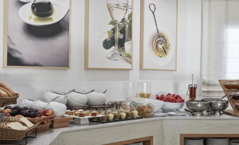 За закуска или вечеря елегантната обстановка създава спокойна атмосфера, съчетана с най-добрите и внимателно подбрани суровини. От средиземноморски рецепти до изкушаващи интернационални ястия и традиционни гръцки специалитети, комплексyt предлага голямо разнообразие от възможности за хранене точно на плажа.