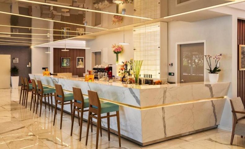 Бар с панорамна гледка към морето, перфектен за релаксация и наслаждаване на коктейли в приятна атмосфера.